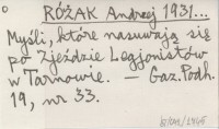 RÓŻAK Andrzej 1931... Myśli, które nasuwają się po Zjeździe Legjonistów w Tarnowie.
