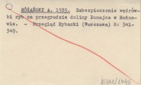 RÓŻAŃSKI A. 1935 Zabezpieczenie wędrówki ryb na przegrodzie doliny Dunajca w Rożnowie.
