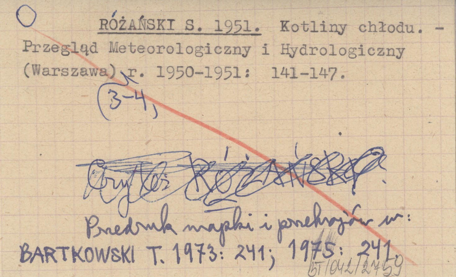 Przegląd Meteorologiczny i Hydrologiczny (Warszawa) , 3-4, r. 1950-1951: 141-147. Przedruk mapki i przekrojów w: BARTKOWSKI T. 1973: 241 ; 1975: 241.