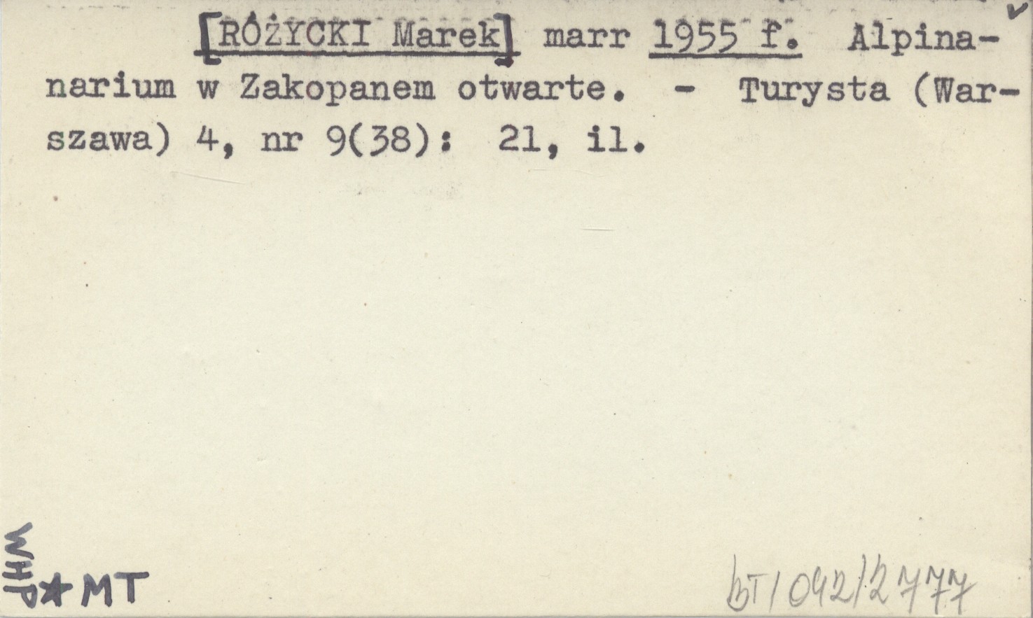 marr [RÓŻYCKI Marek] 1955 f Alpinarium w Zakopanem otwarte.