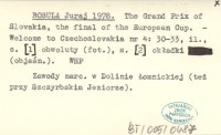 BOBULA Juraj 1978 The Grand Prix of Slovakia, the final of the European Cup.