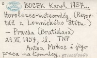 BOCEK Karol 1957... Horolezec-meteorológ. (Reportáľ z Lomnického ątítu.).