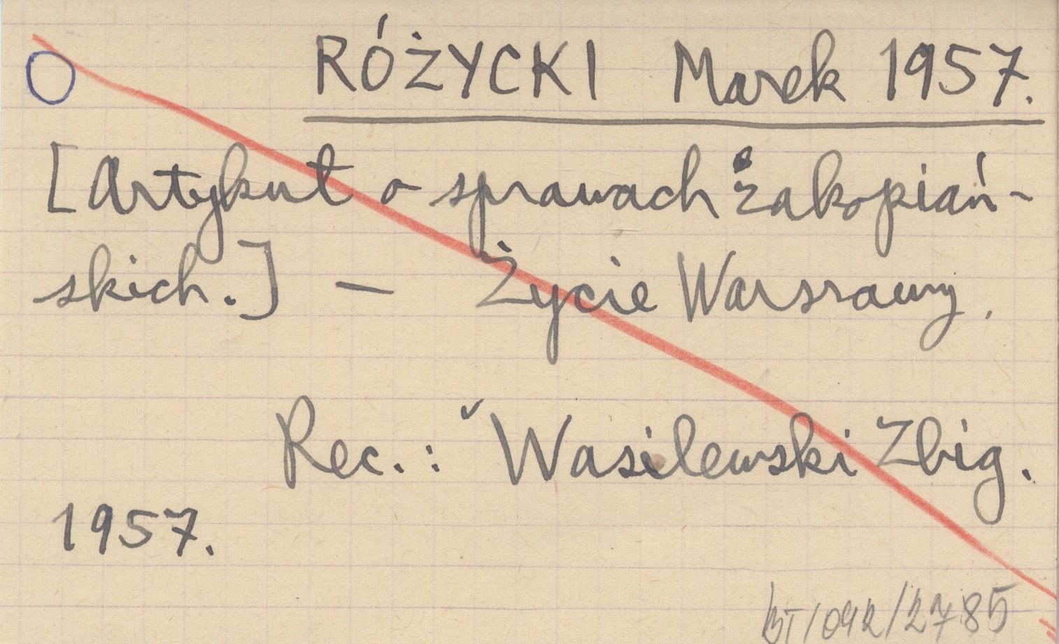 Życie Warszawy, REC: WASILEWSKI Zbig. 1957