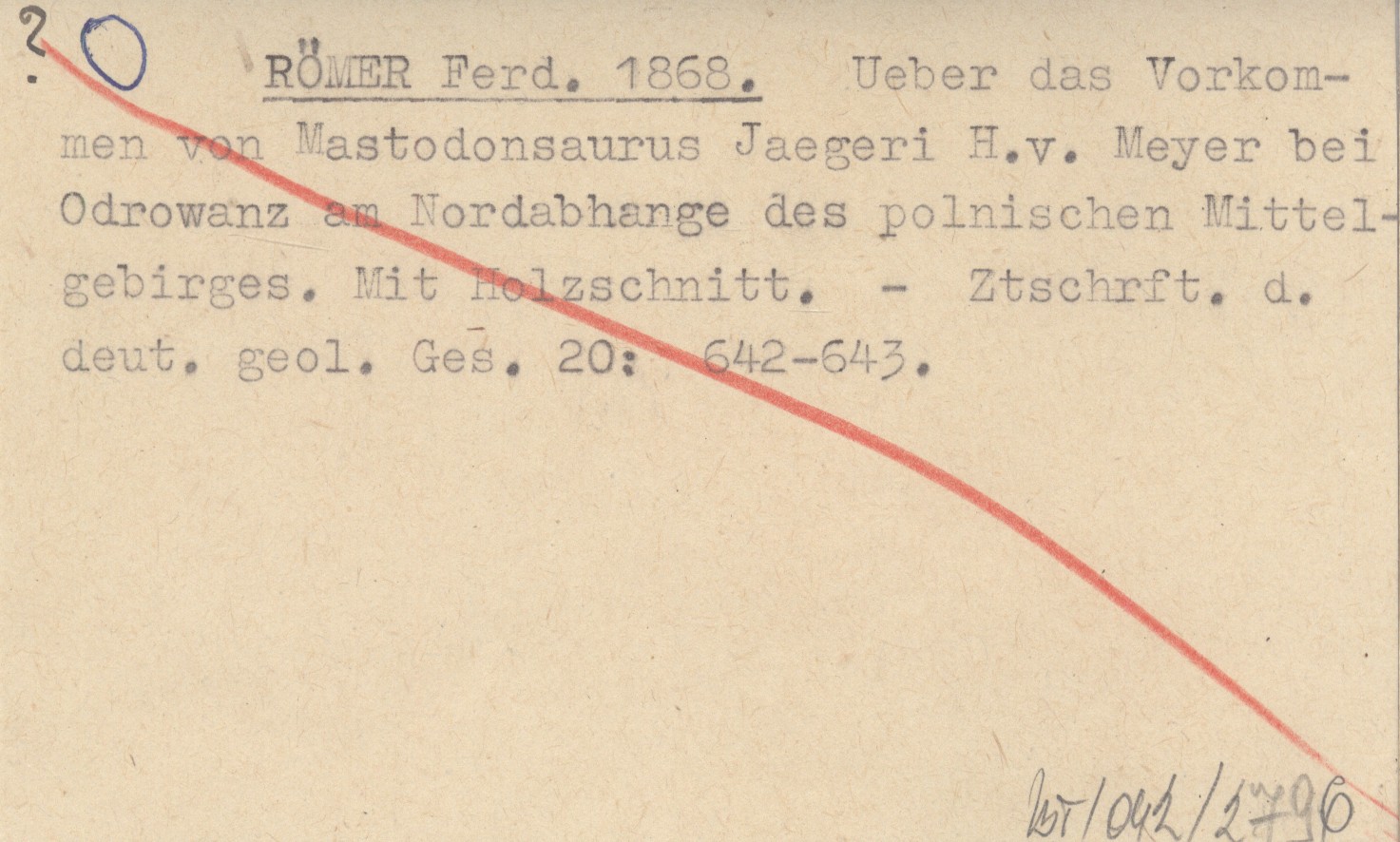 RÖMER Ferd. 1868 Ueber das Vorkommen von Mastodonsaurus Jaegeri H.v. Meyer bei Odrowanz am Nordabhange des polnischen Mittelgebirges. Mit Holzschnitt.