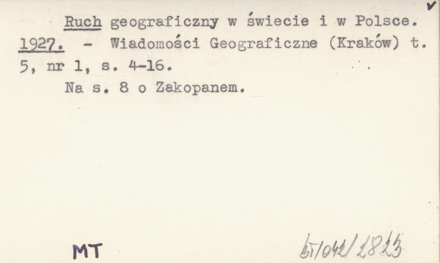 Wiadomości Geograficzne (Kraków) , T. 5, nr 1: 4-16. Na s. 8 o Zakopanem.
