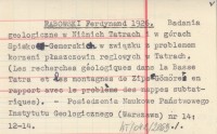 RABOWSKI Ferdynand 1926 Badania geologiczne w Niżnich Tatrach i w górach Spisko-Gemerskich w związku z problemem korzeni płaszczowin reglowych w Tatrach. (Les recherches géologiques dans la Basse Tatra et les montagnes de Zips-Gömörer en rapport avec le probléme des nappes subtatriques).