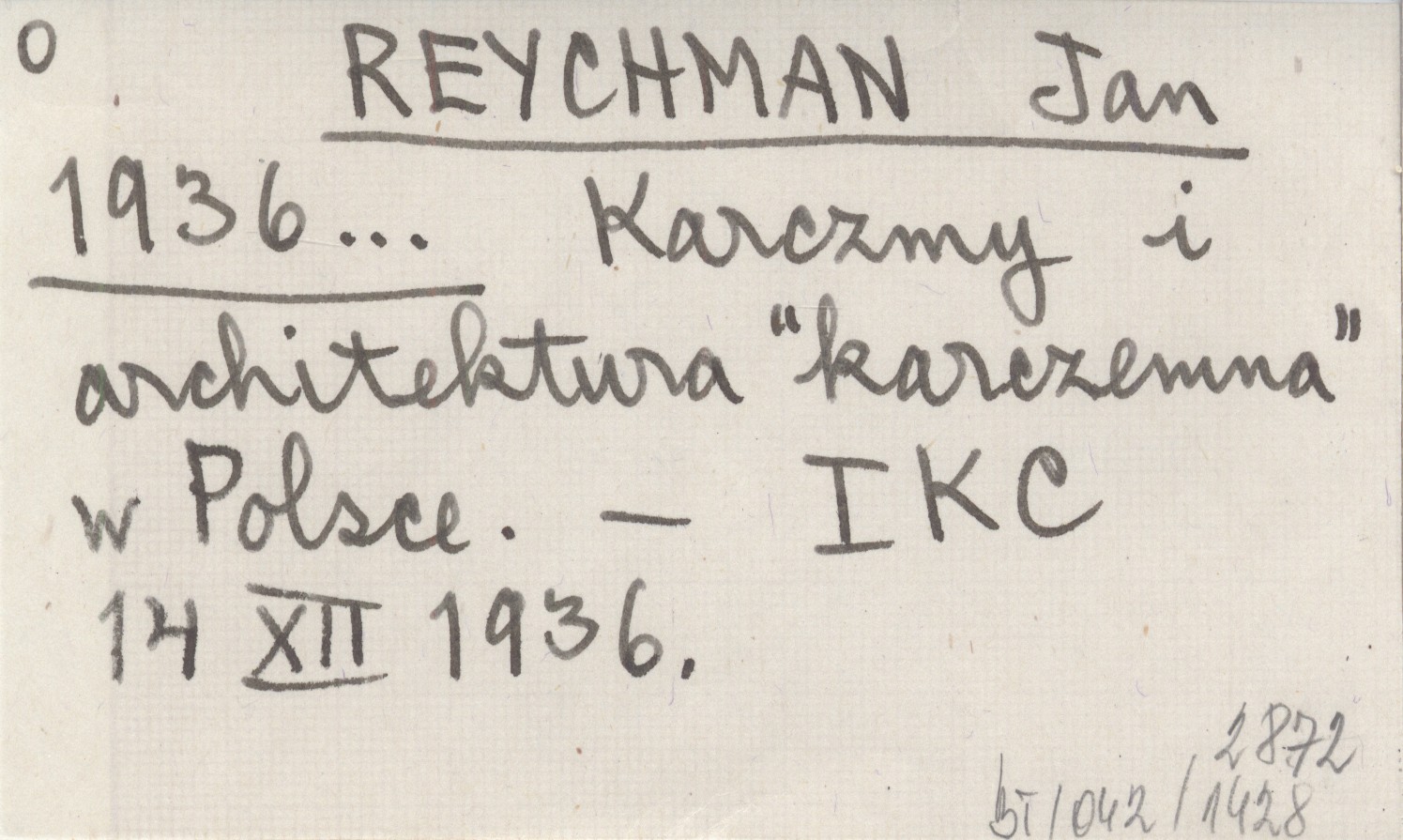 REYCHMAN Jan 1936... Karczmy i architektura "karczemna" w Polsce.