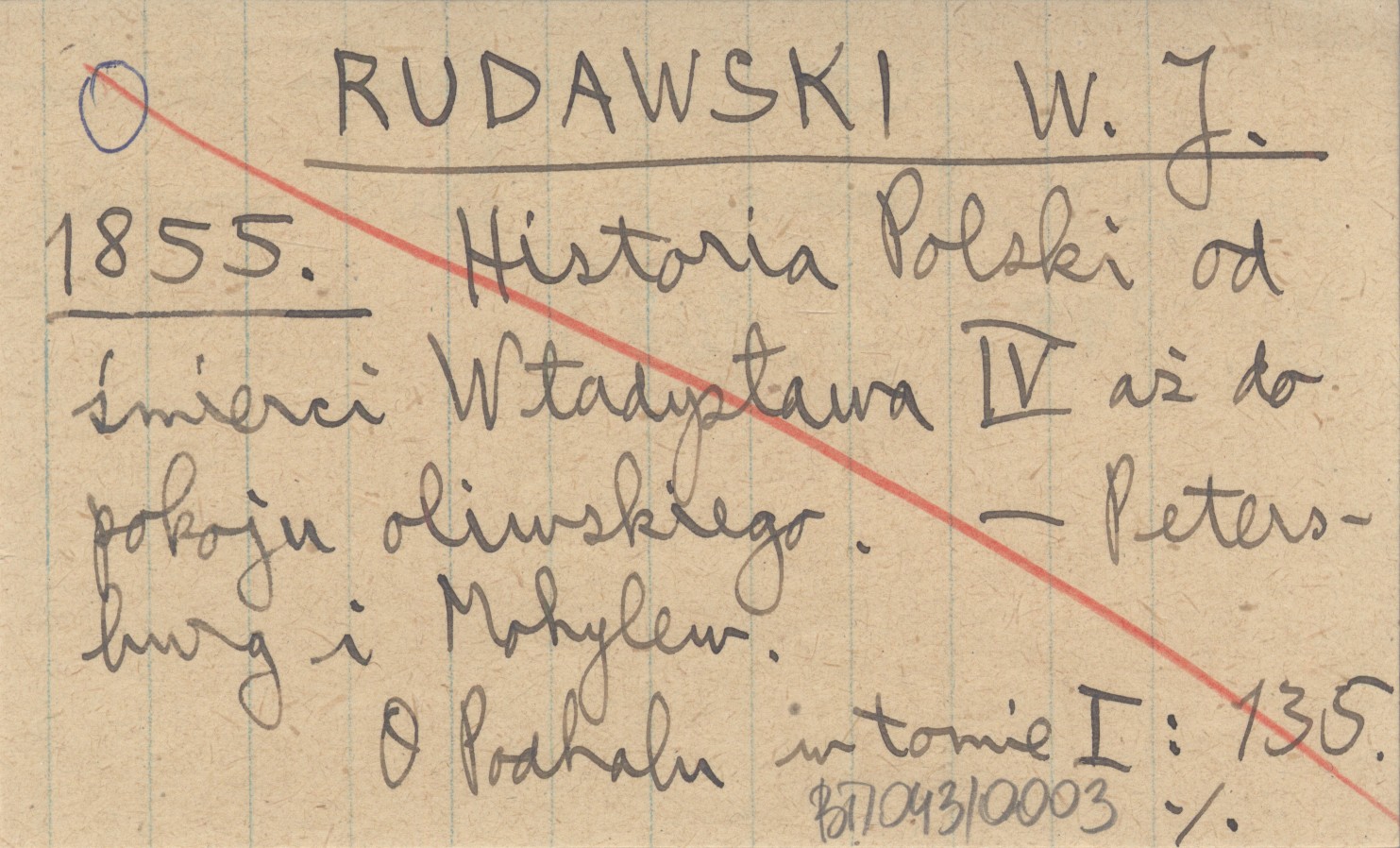 RUDAWSKI W. J. 1855 Historia Polski od śmierci Władysława IV aż do pokoju oliwskiego.