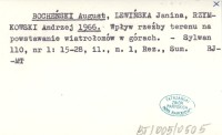 BOCHEŃSKI August LEWIŃSKA, Janina. ; RZYMKOWSKI, Andrzej. ; 1966 Wpływ rzeŒby terenu na powstawanie wiatrołomów w górach.