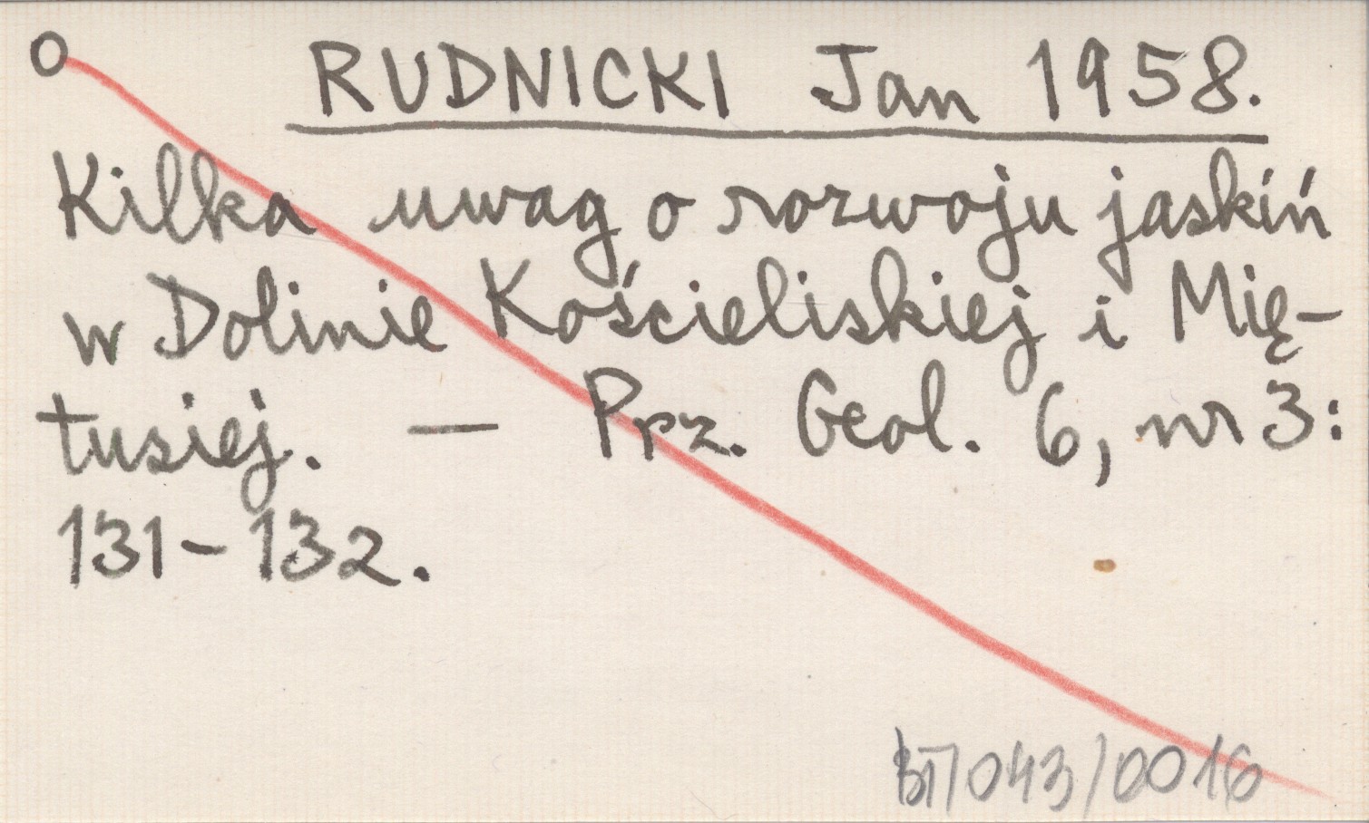 RUDNICKI Jan 1958 Kilka uwag o rozwoju jaskiń w Dolinie Kościeliskiej i Miętusiej.