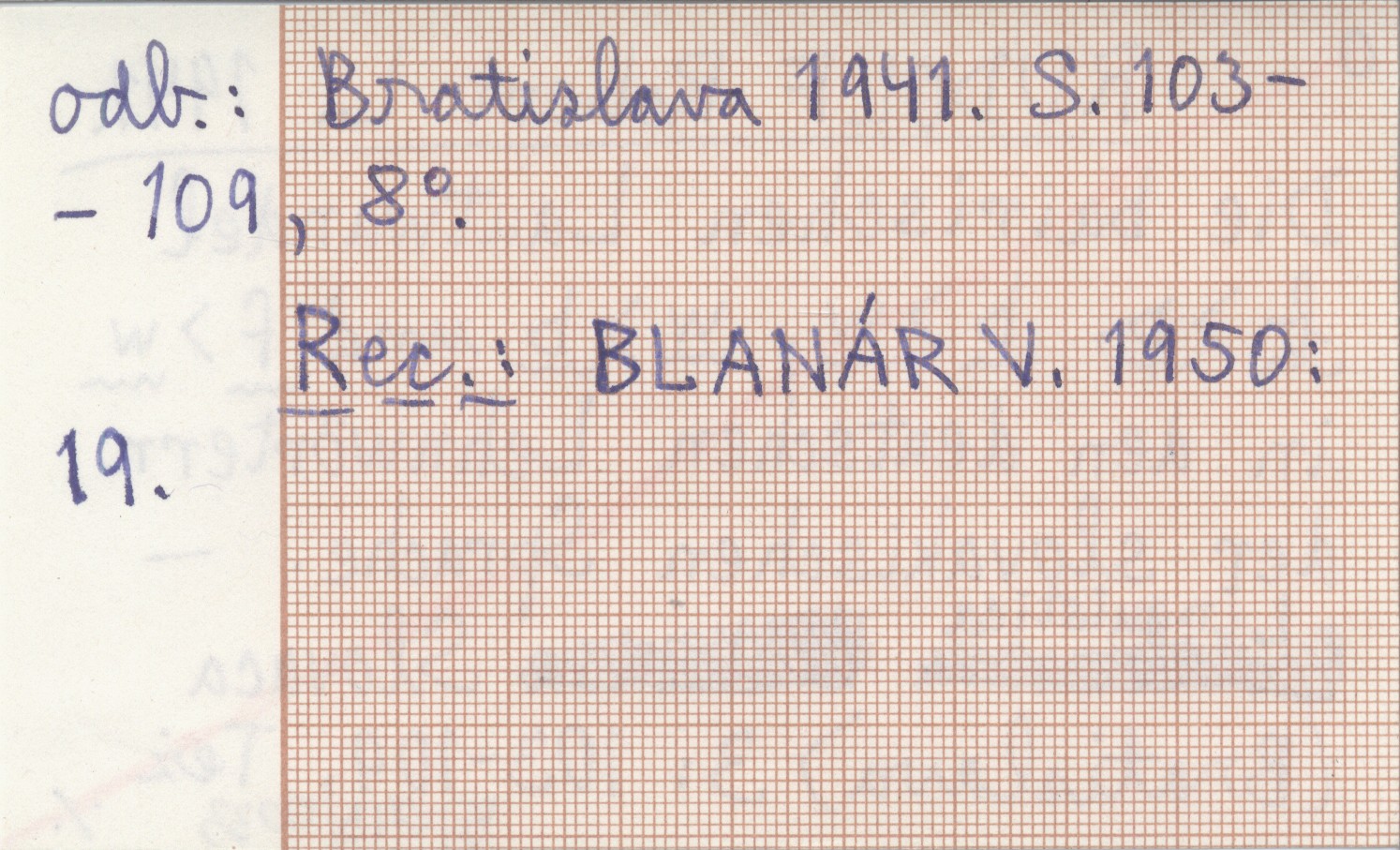 Linguistica Slovaca (Bratislava) , 3: 103-109. Też odb.: Bratislava 1941. S. 103-109, 8°. REC: BLANÁR V. 1950: 19.