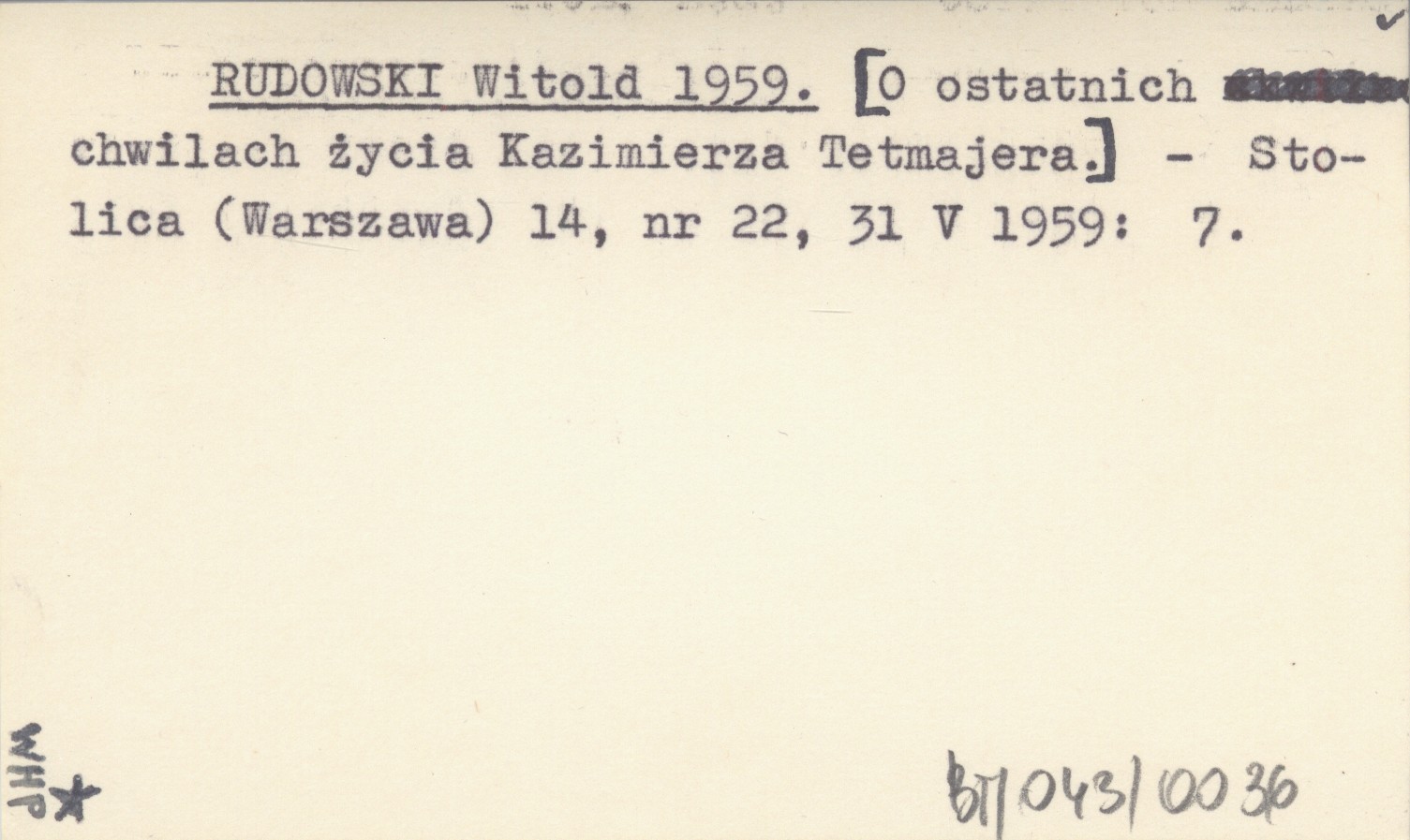 RUDOWSKI Witold 1959 [O ostatnich chwilach życia Kazimierza Tetmajera].