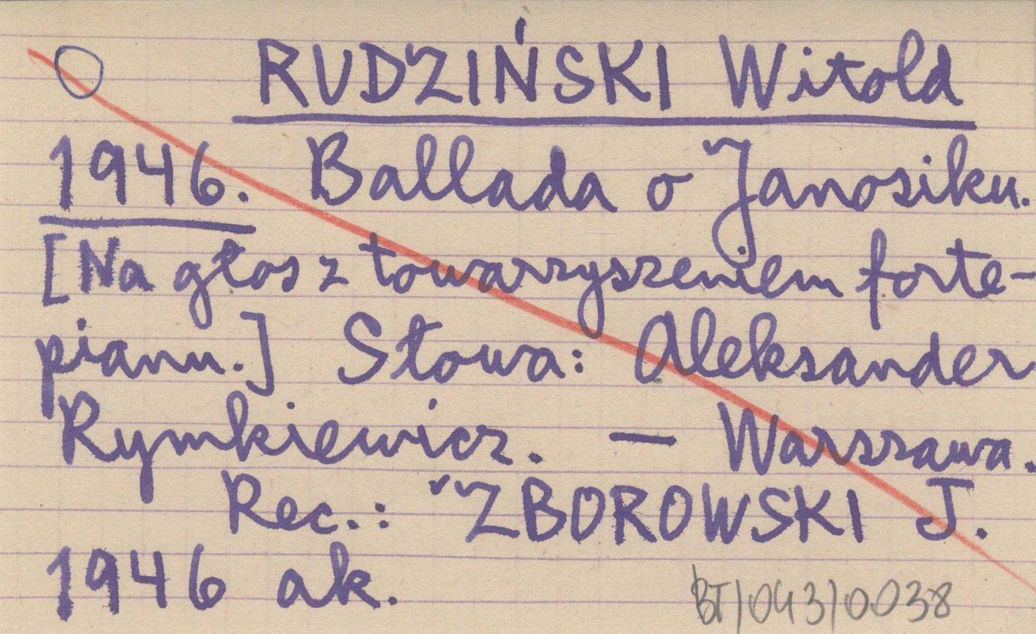 RUDZIŃSKI Witold 1946 Ballada o Janosiku. [Na głos z towarzyszeniem fortepianu] Słowa: Aleksander Rymkiewicz.