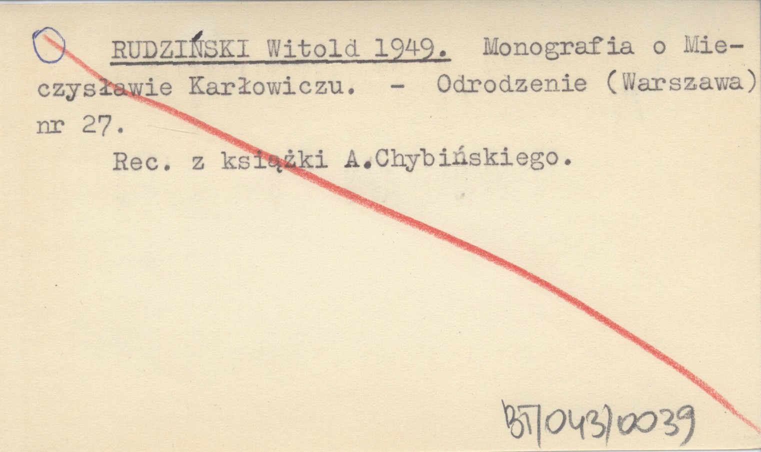 RUDZIŃSKI Witold 1949 Monografia o Mieczysławie Karłowiczu.