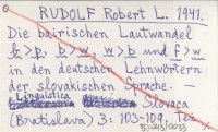 RUDOLF Robert L. 1941 Die bairischen Lautwandel b>p, b>w, w>b und f>w in den deutschen Lehnwörtern der slovakischen Sprache.