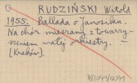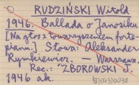 RUDZIŃSKI Witold 1955 Ballada o Janosiku. Na chór mieszany z towarzyszeniem małej orkiestry.