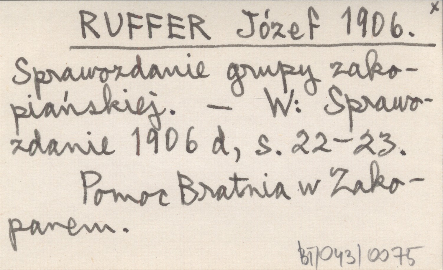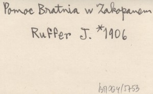 RUFFER Józef 1906 Sprawozdanie grupy zakopiańskiej.
