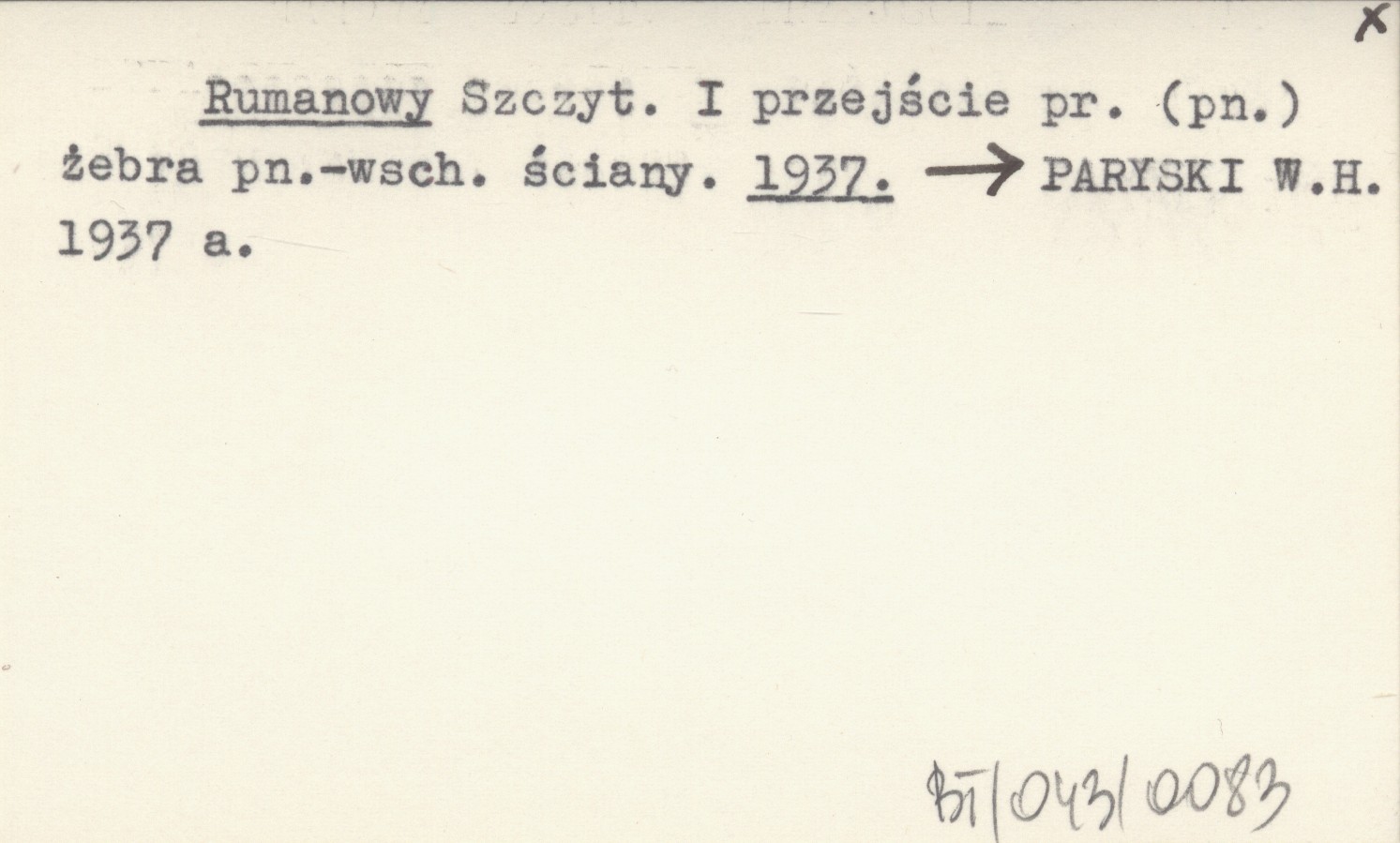Rumanowy Szczyt. I przejście pr. (pn.) żebra pn.-wsch. ściany. 1937
