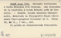 RUMEK Anna 1946 Okrzemki torfowiska w Borku Fałęckim koło Krakowa. Les diatomées de la tourbiére á Borek Fałęcki prés de Cracovie.