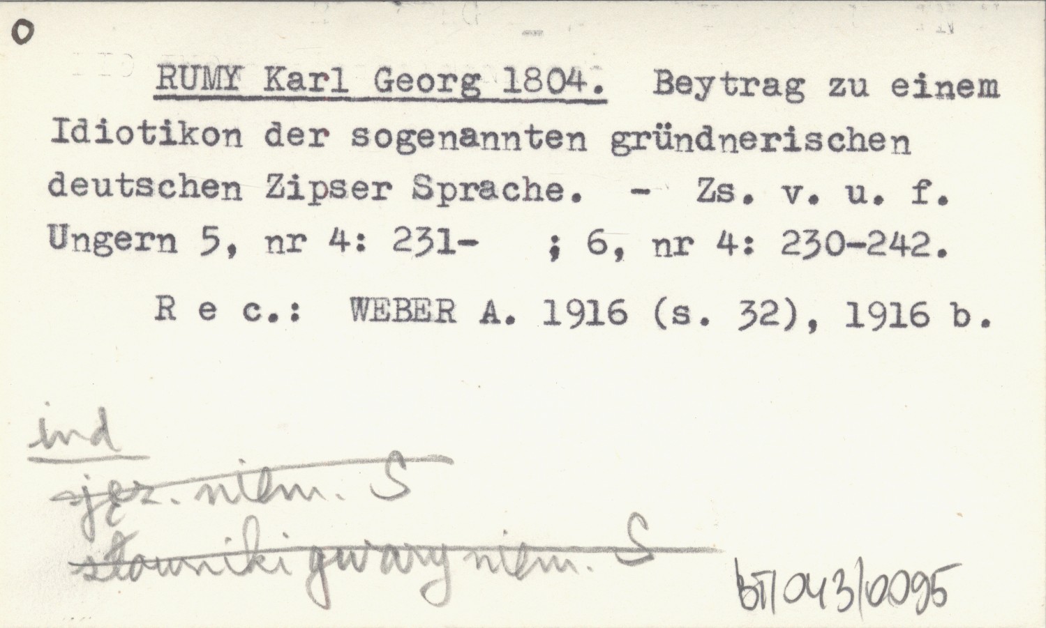 RUMY Karl Georg 1804 Beytrag zu einem Idiotikon der sogenannten gründnerischen deutschen Zipser Sprache.