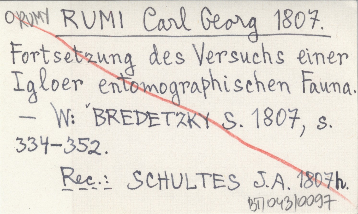 RUMI Carl Georg 1807 Fortsetzung des Versuchs einer Igloer entomographischen Fauna.