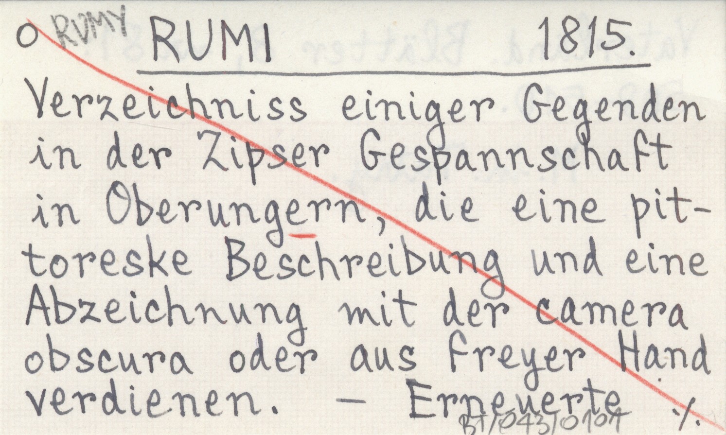 RUMI 1815 Verzeichniss einiger Gegenden in der Zipser Gespannschaft in Oberungern, die eine pittoreske Beschreibung und eine Abzeichnung mit der camera obscura oder aus freyer Hand verdienen.