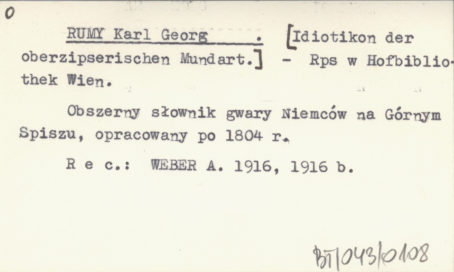 Hofbibliothek (Wien) , Obszerny słownik gwary Niemców na Górnym Spiszu, opracowany po 1804 r. Rps REC: WEBER A. 1916, 1916 b
