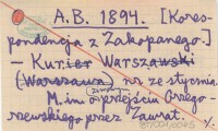 A. B. 1894 [Korespondencja z Zakopanego.]