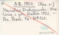 A. B. 1902 Stanisław Drohojowski: Wrażenia z gór. Kraków 1902.