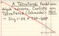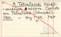 A Tátrafüredi fürdö-vendégek névsora. Curliste von Tátrafüred (Schmecks). 1900
