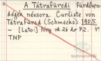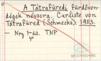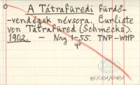 A Tátrafüredi fürdö-vendégek névsora. Curliste von Tátrafüred (Schmecks). 1902