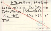 A Tátrafüredi fürdövendégek névsora. Curliste von Tátrafüred (Schmecks). 1906-1907