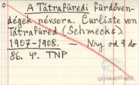 A Tátrafüredi fürdövendégek névsora. Curliste von Tátrafüred (Schmecks). 1907-1908
