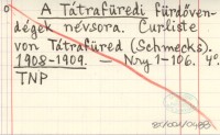 A Tátrafüredi fürdövendégek névsora. Curliste von Tátrafüred (Schmecks). 1908-1909