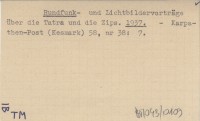 Rundfunk- und Lichtbildervorträge über die Tatra und die Zips. 1937