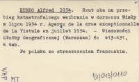 RUNDO Alfred 1934 Rzut oka na przebieg katastrofalnego wezbrania w dorzeczu Wis³y w lipcu 1934 r. Aperçu de la crue exceptionnelle de la Vistule en juillet 1934.