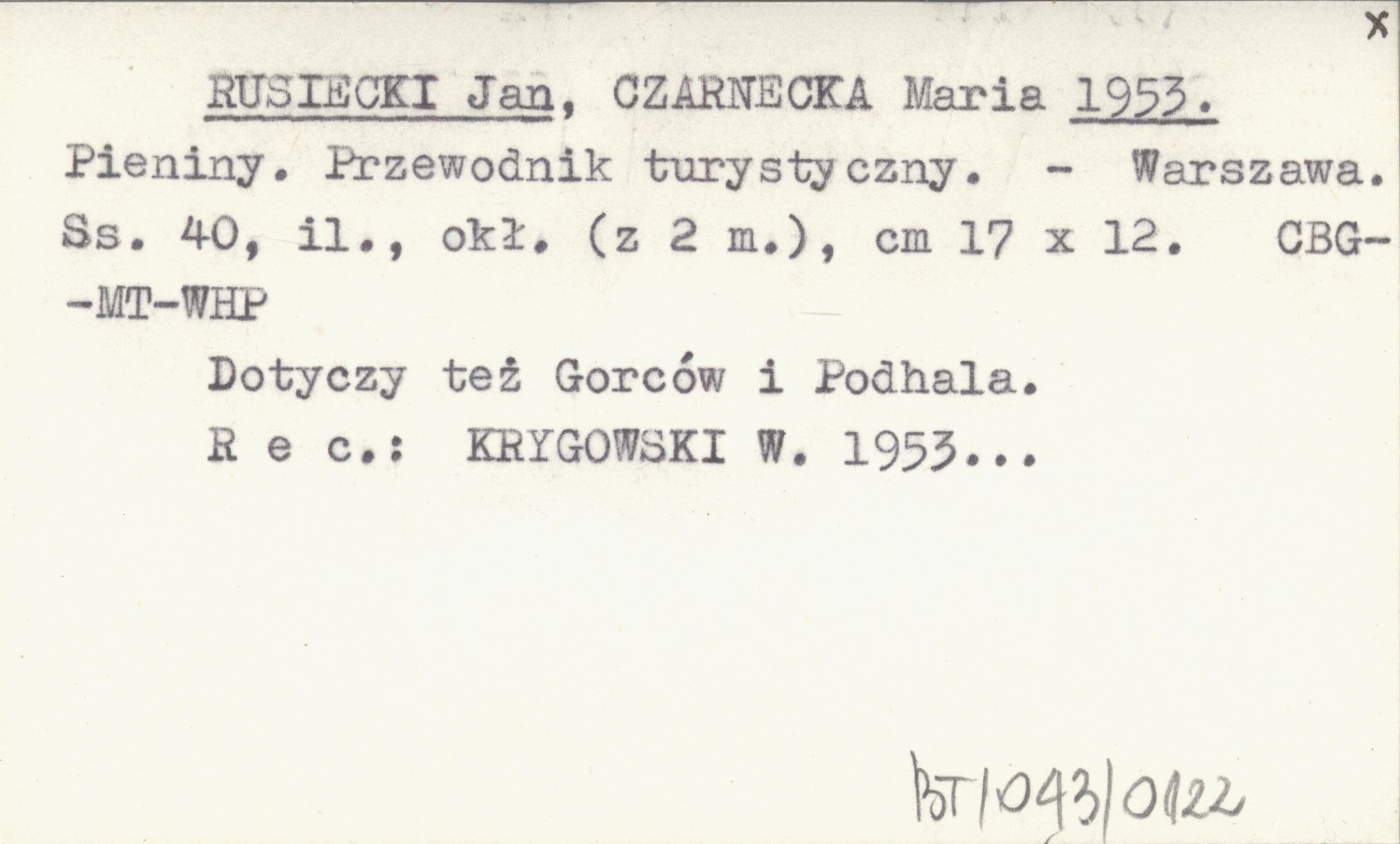 RUSIECKI Jan CZARNECKA, Maria. ; 1953 Pieniny. Przewodnik turystyczny.