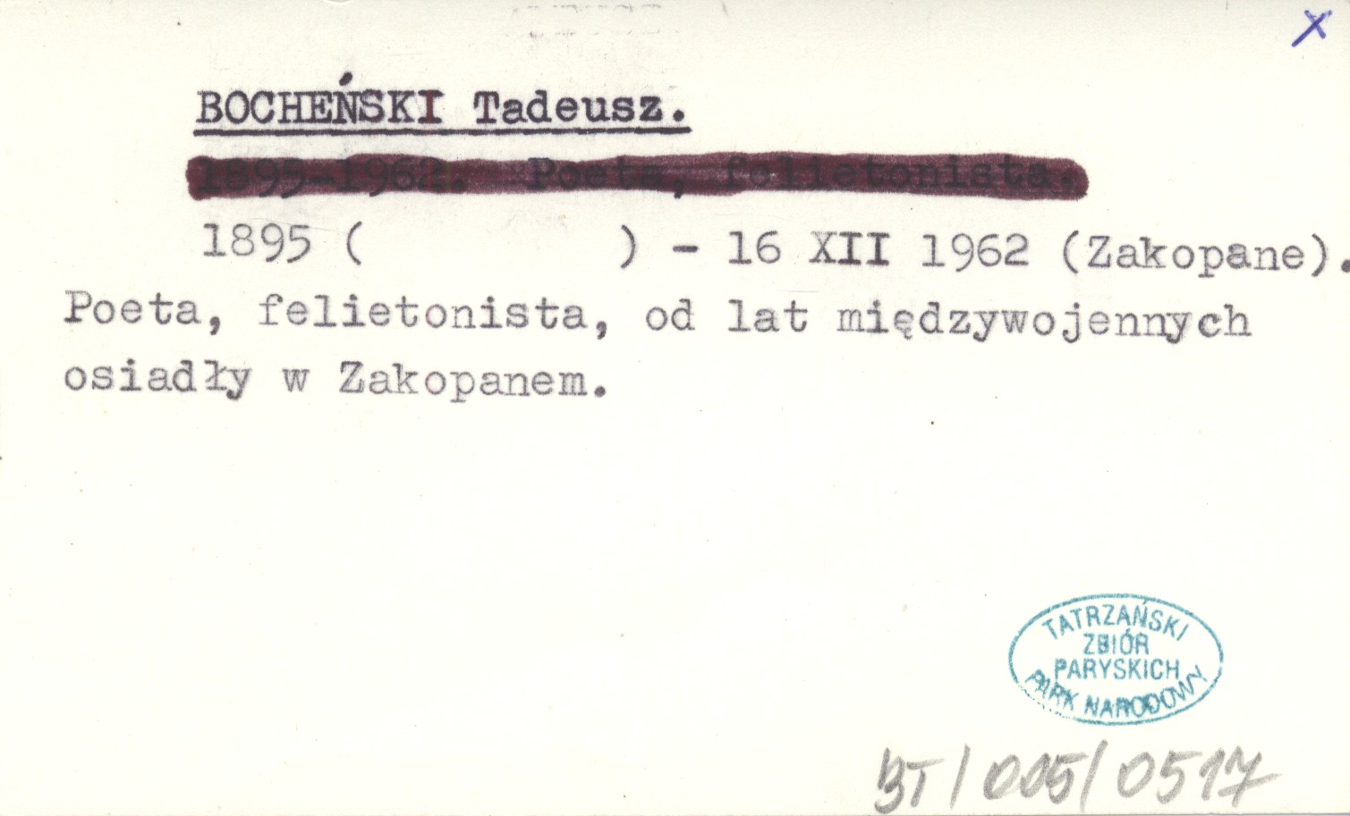 1895 - 16 XII 1962 (Zakopane). Poeta, felietonista, od lat międzywojennych osiadły w Zakopanem.