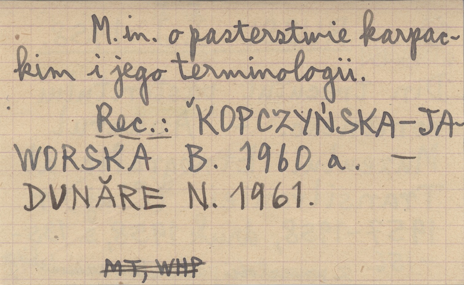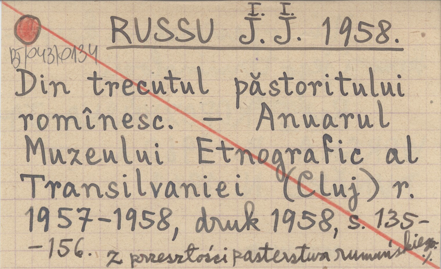 Anuarul Muzeului Etnografic al Transilvaniei (Cluj) , R. 1957-1958, druk 1958: 135-156. Z przeszłości pasterstwa rumuńskiego. M.in. o pasterstwie karpackim i jego terminologii. REC: KOPCZYŃSKA-JAWORSKA B. 1960 a ; DUNĂRE N. 1961 ;