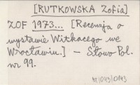 ZOF [RUTKOWSKA Zofia] 1973... [Recenzja o wystawie Witkacego we Wrocławiu].