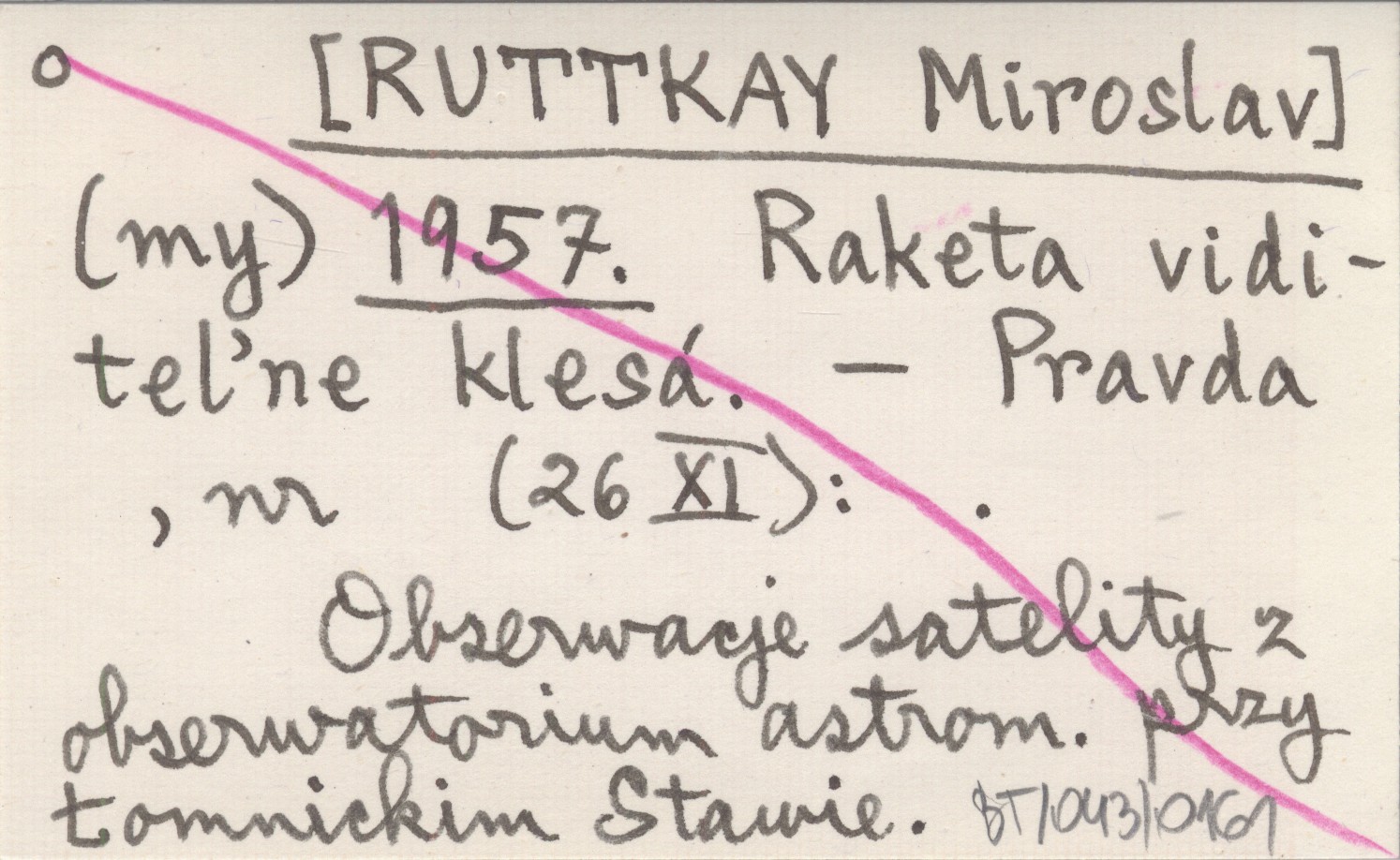 (my) [RUTTKAY Miroslav] 1957 Raketa viditeľne klesá.