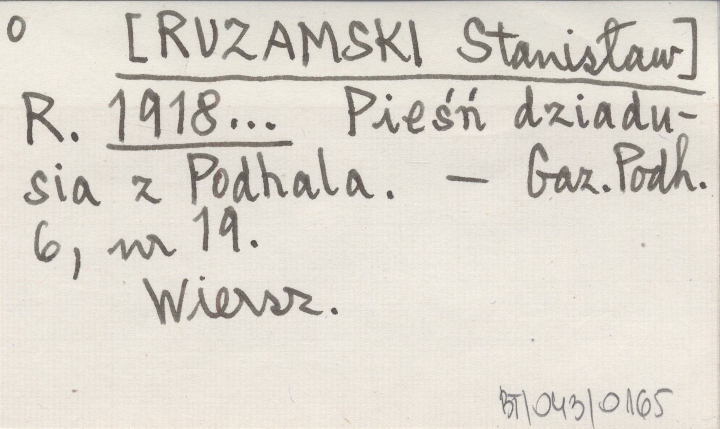 R. [RUZAMSKI Stanisław] 1918... Pieśń dziadusia z Podhala.