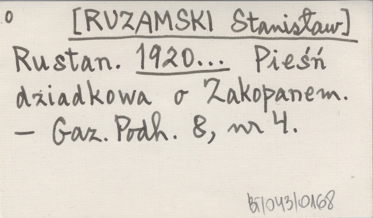 Rustan. [RUZAMSKI Stanisław] 1920... Pieśń dziadkowa o Zakopanem.