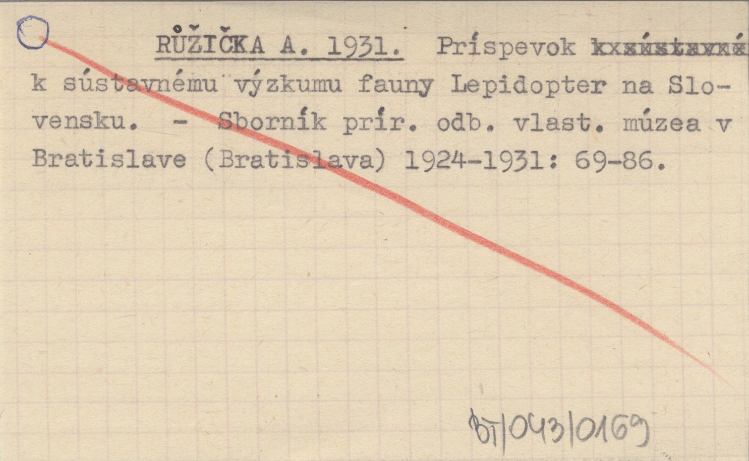 RŮŽIČKA A. 1931 Príspevok k sústavnému výzkumu fauny Lepidopter na Slovensku.