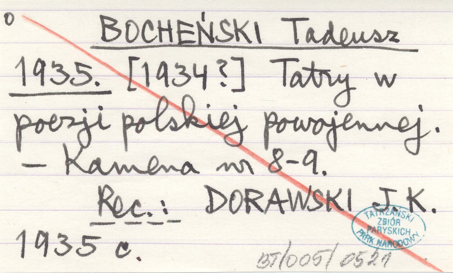 BOCHEŃSKI Tadeusz 1935 [1934?] Tatry w poezji polskiej powojennej.
