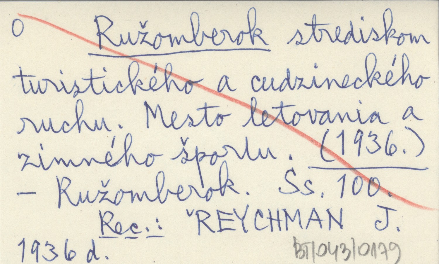 Ružomberok , 100 s. REC: REYCHMAN J. 1936 d