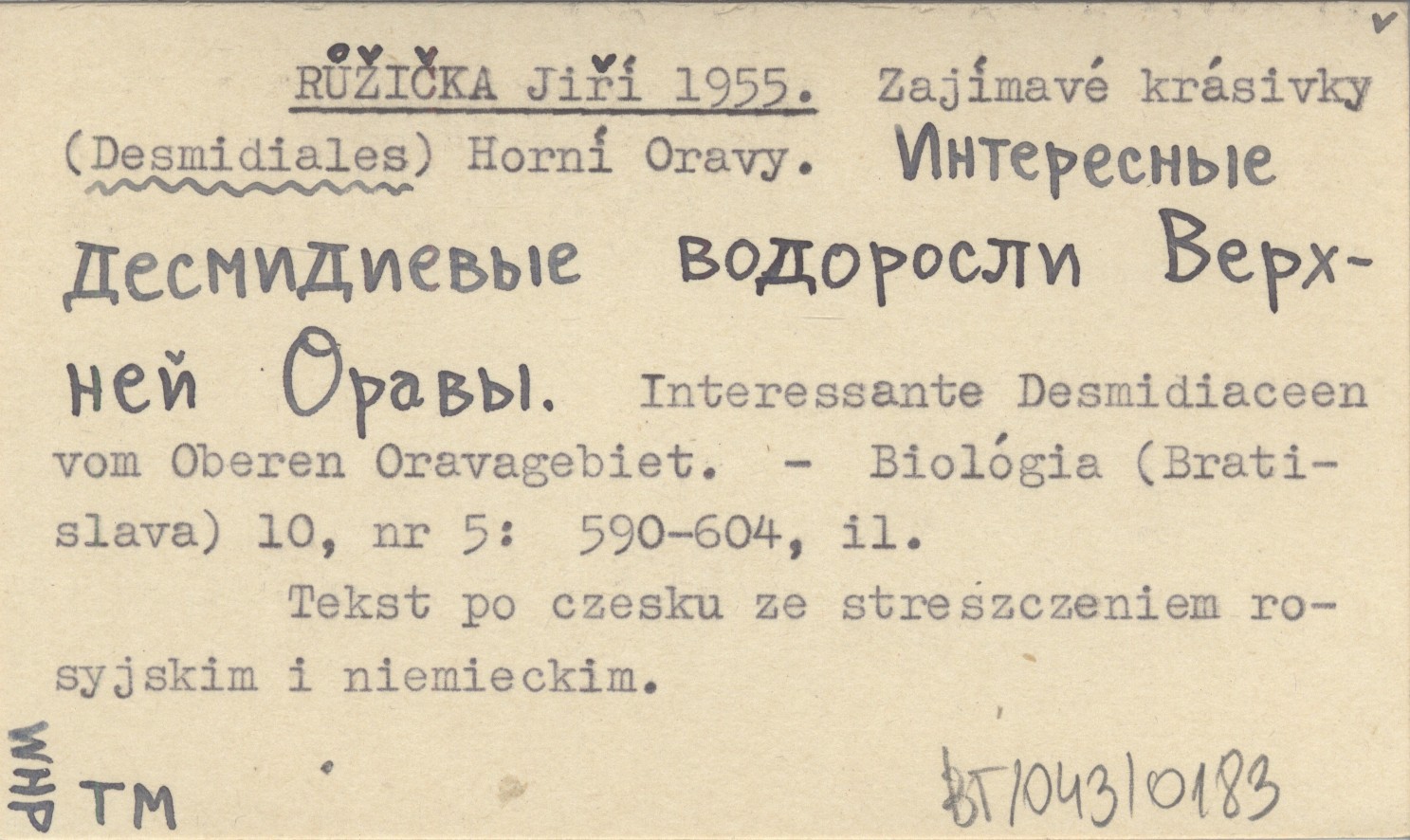 RŮŽIČKA Jiří 1955 Zajímavé krásivky (Desmidiales) Horní Oravy. Interesnye desmidievye vodoroslu Verchnej Oravy. Interessante Desmidiaceen vom Oberen Oravagebiet.