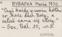 RYBACKA Maria 1932... "Czyń każdy w swoim kółku co każe duch Boży, a całość sama się złoży".