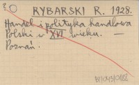 RYBARSKI R. 1928 Handel i polityka handlowa Polski w XVI wieku.