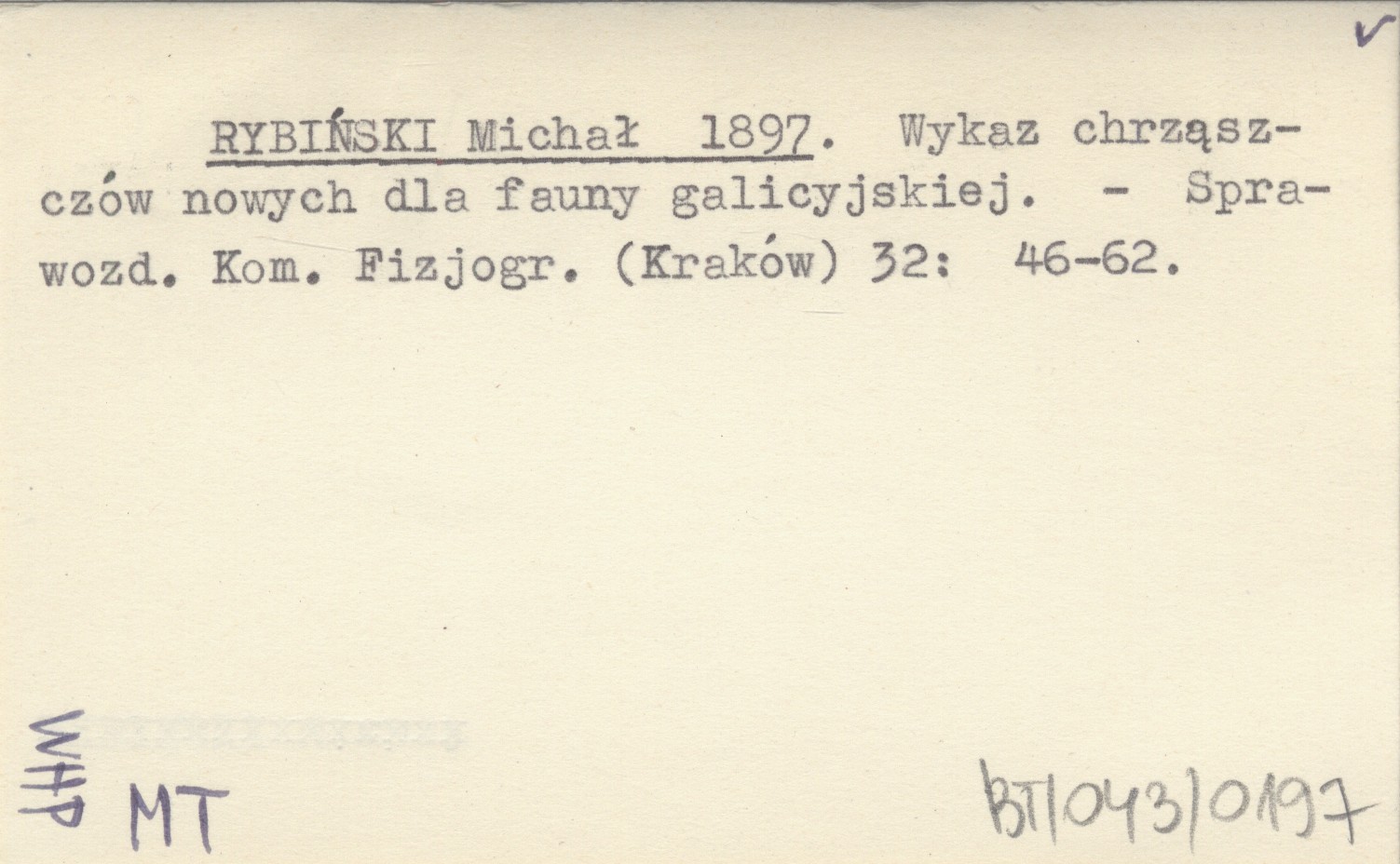 Wykaz chrząszczów nowych dla fauny galicyjskiej.